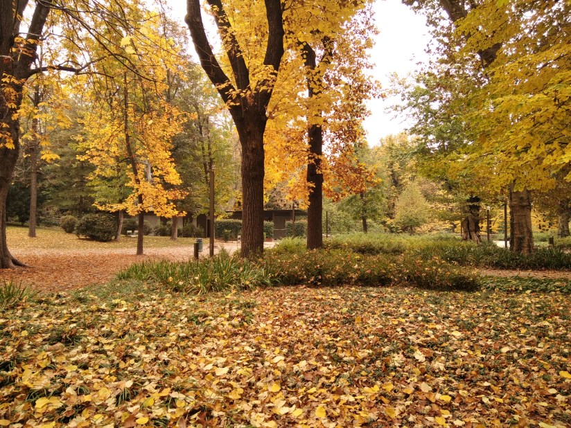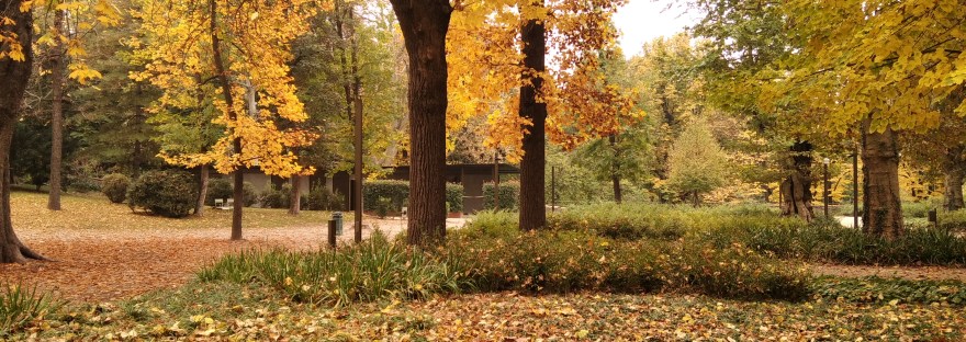 In cinque passi l’odore del caffè si espande e si allarga nel bosco ricco di lamine d’oro e sprazzi di fronde verdeggianti dei Giardini Reali. I viali sono ricchi di foglie secche e crepitano sotto ogni distinto e incerto movimento del piede. Incerto perché bisogna trovarsi in luoghi come questi per camminare esitanti, in modo irresoluto e abbandonare la mente allo stallo benefico.